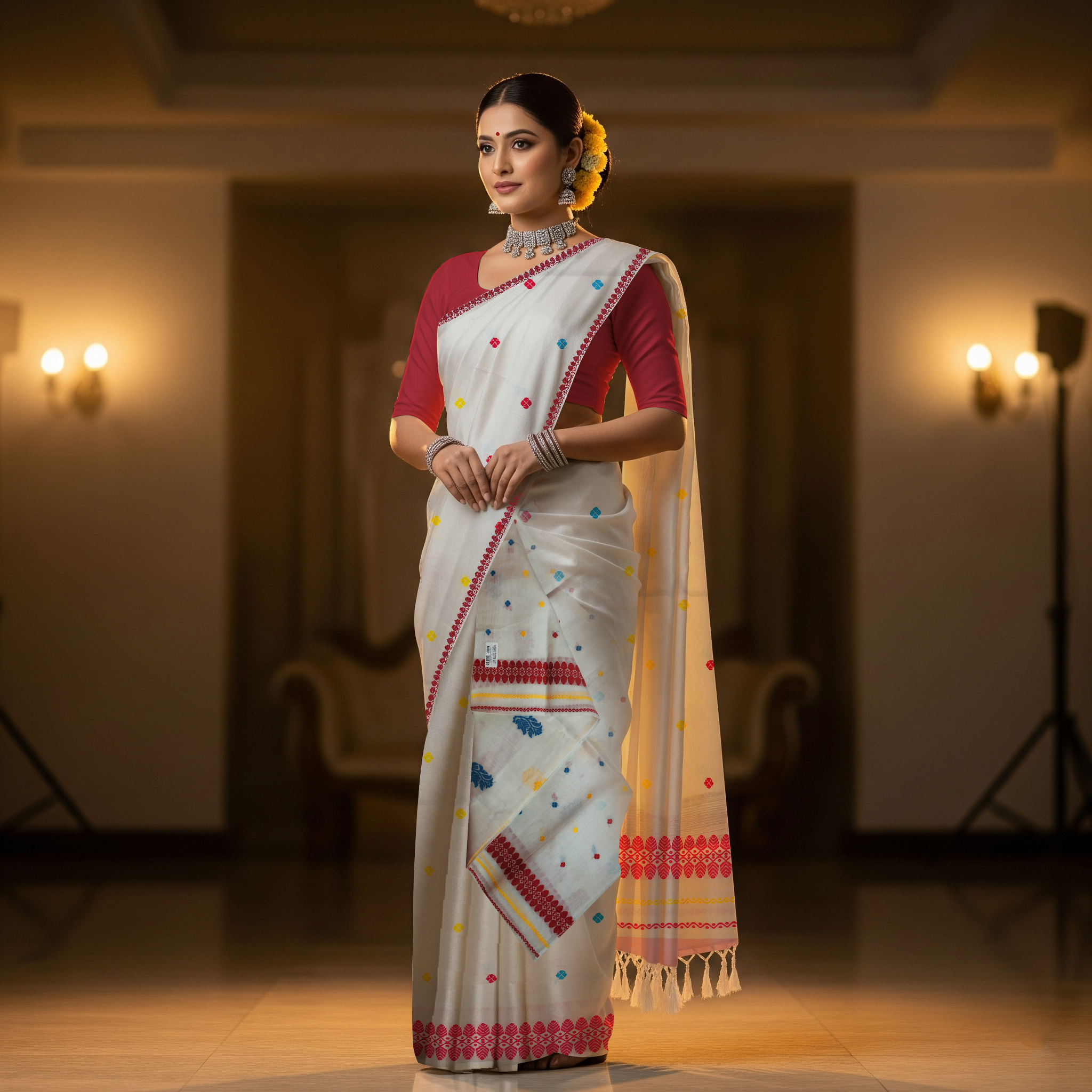 Handcrafted Kesapat Cotton Sador Mekhela with unstitched Blouse piece - Chiccity