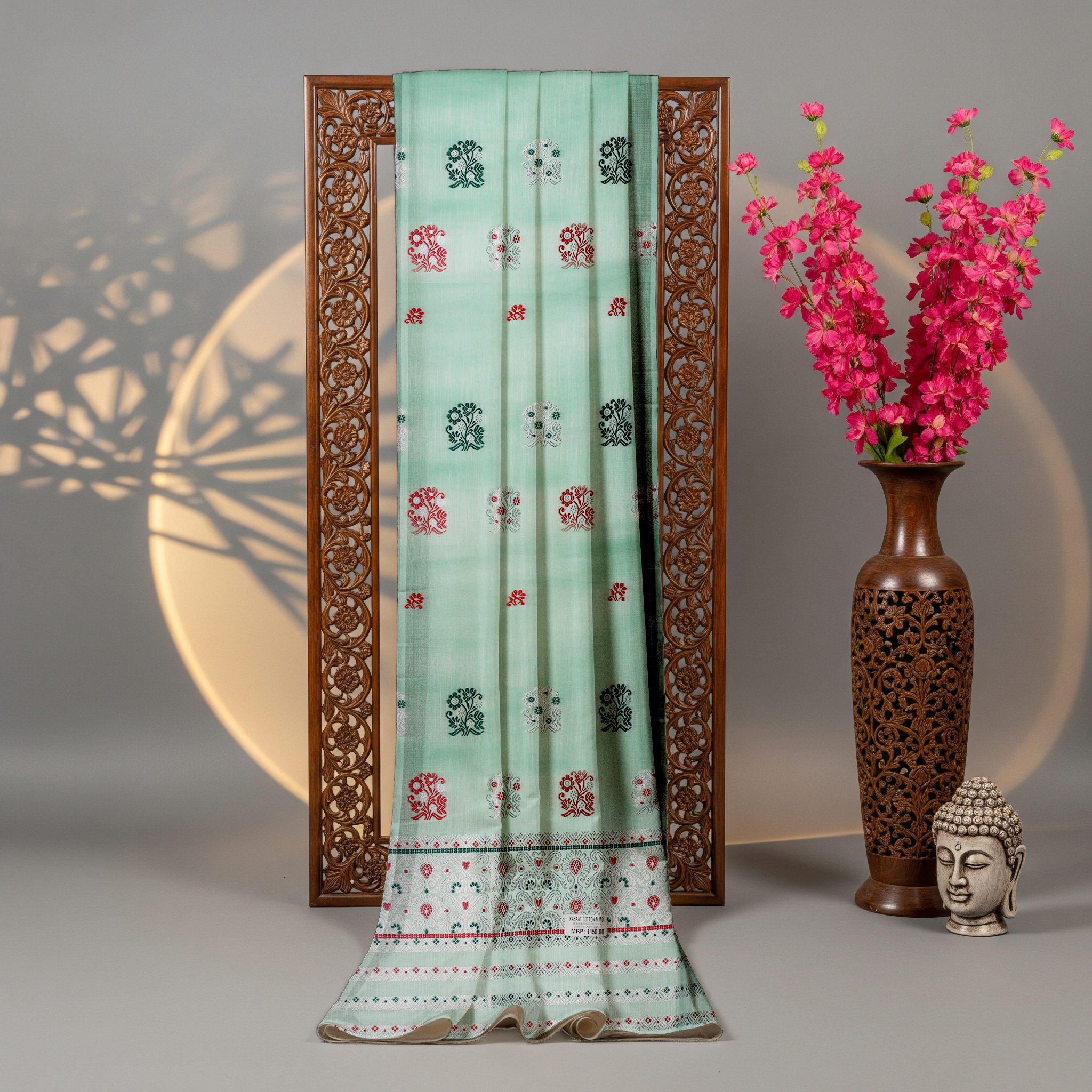 Celebrate the artistry of tradition with our Kesapat Cotton Sador, a timeless piece that embodies the spirit of cultural elegance. Crafted from pure, high-quality cotton, this Sador is renowned for its lightweight feel, soft texture, and beautiful drape that complements any occasion—from everyday wear to festive gatherings.