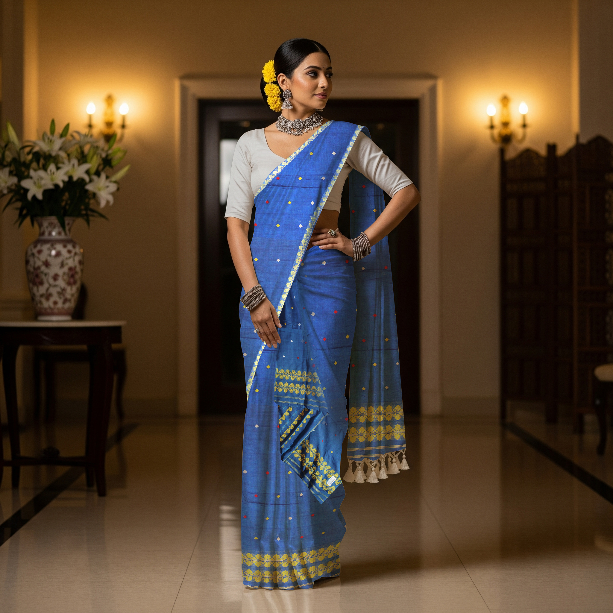 Handcrafted Masrised Cotton Sador Mekhela with unstitched Blouse piece - Chiccity