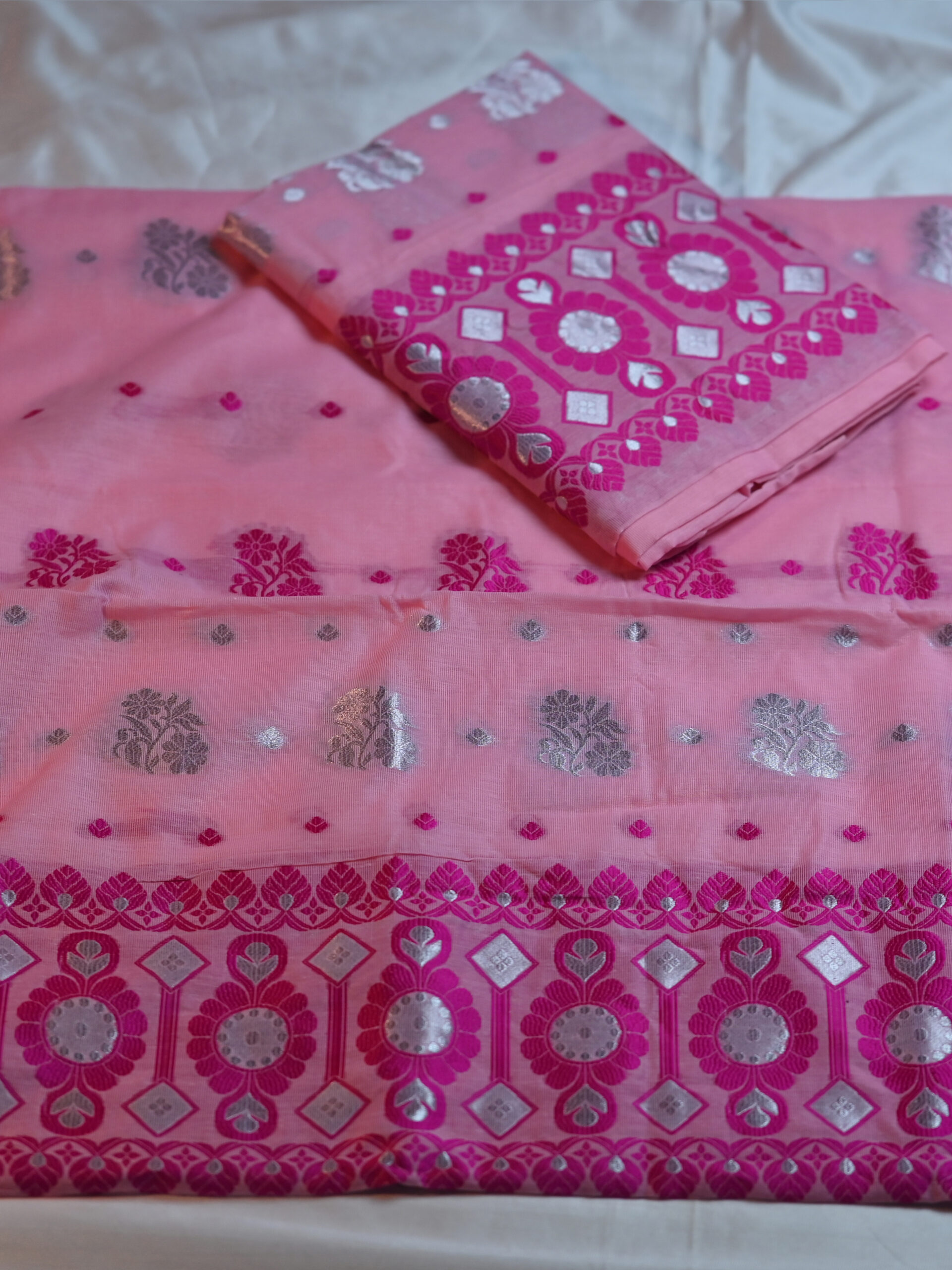 Handcrafted Silk Cotton Sador Mekhela with unstitched Blouse piece